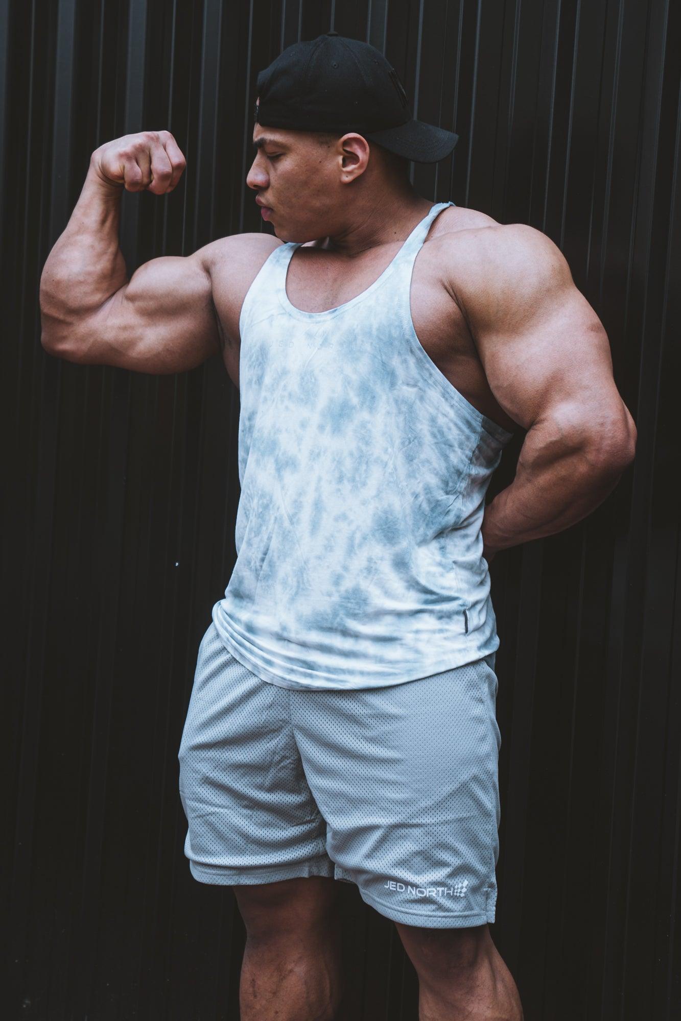 Classic Bodybuilding Racerback Stringer - Gray Tie Dye