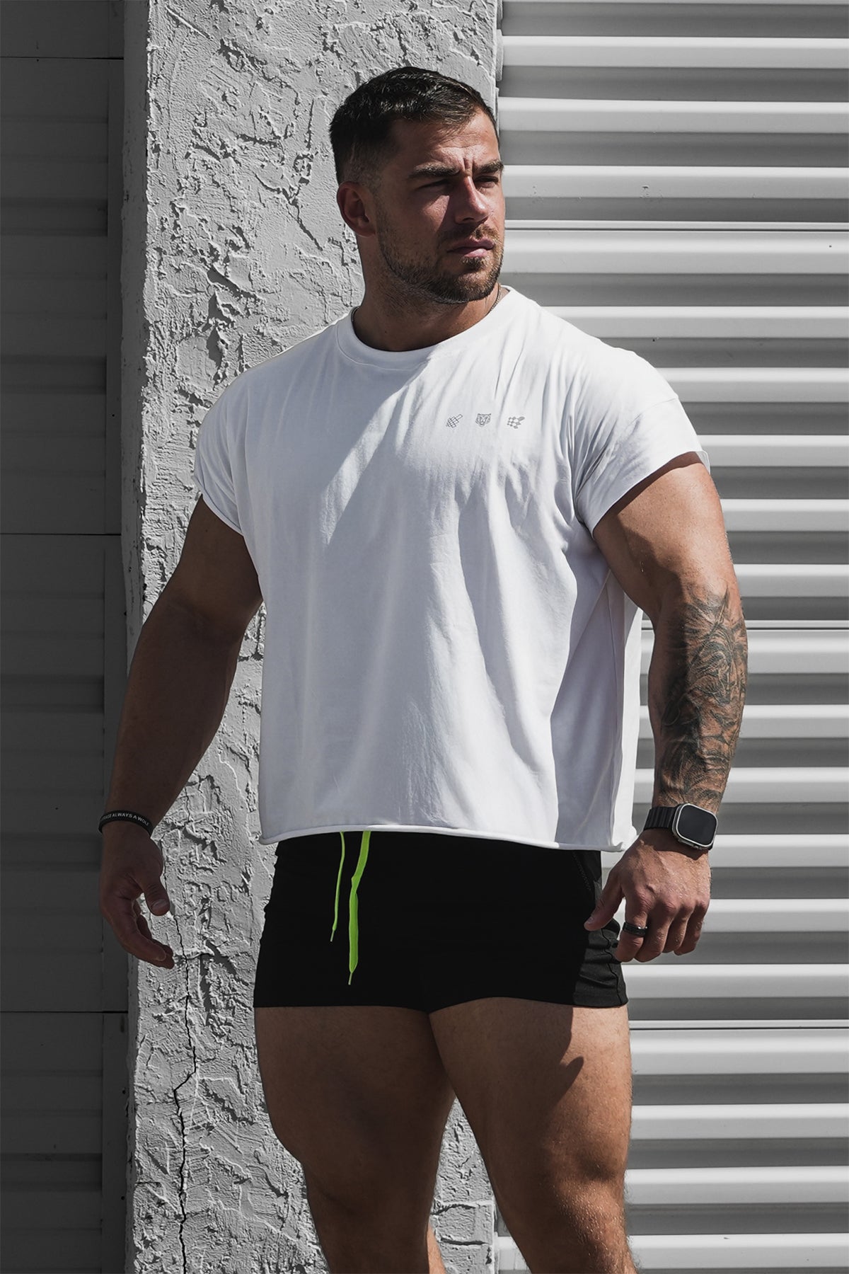 • Cropped length for a unique, edgy look that highlights physique