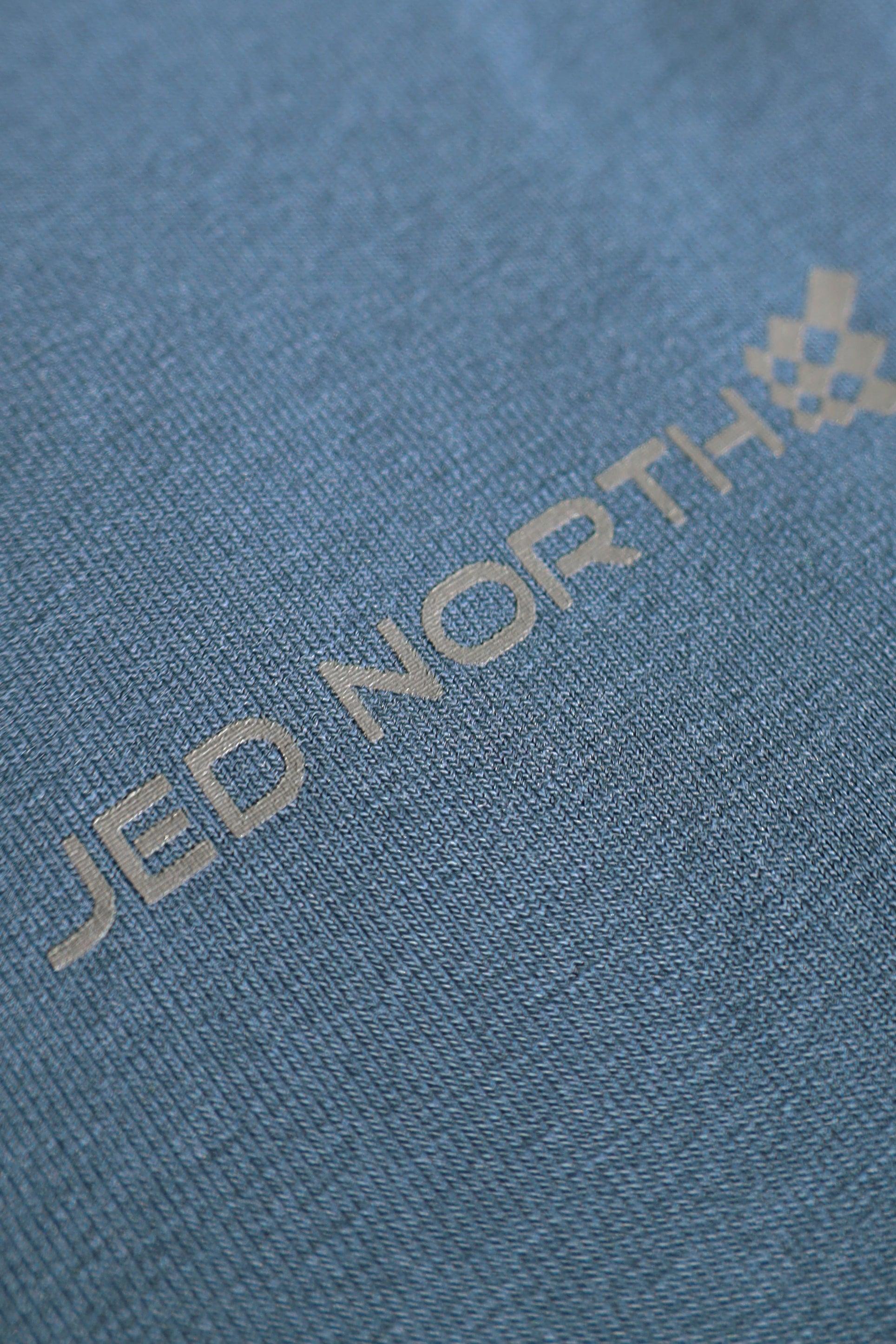 • Small printed Jed North logo on front