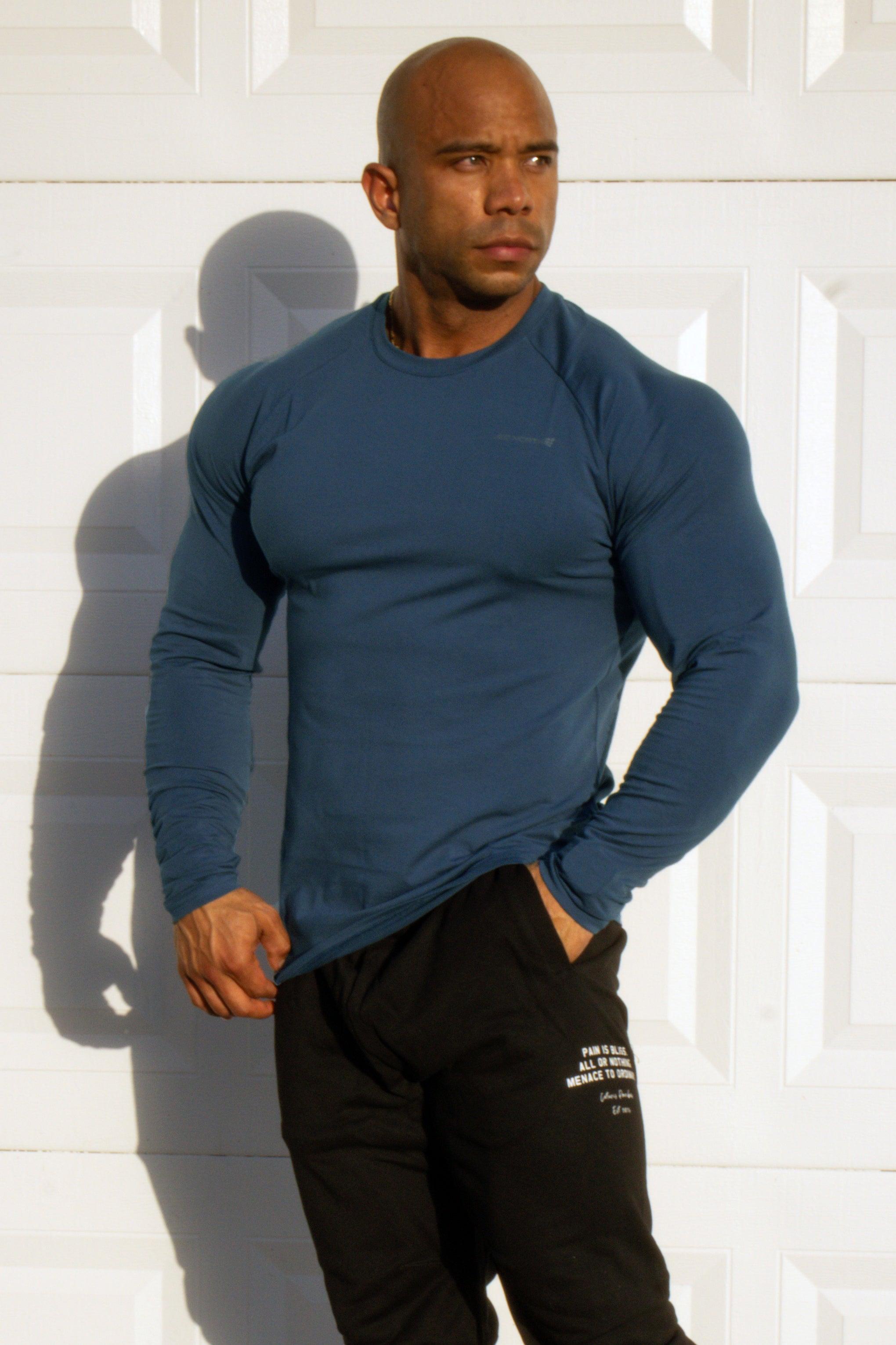 Titan Muscle-Fit Long Sleeve T-Shirt - Steel Blue XL / Blue