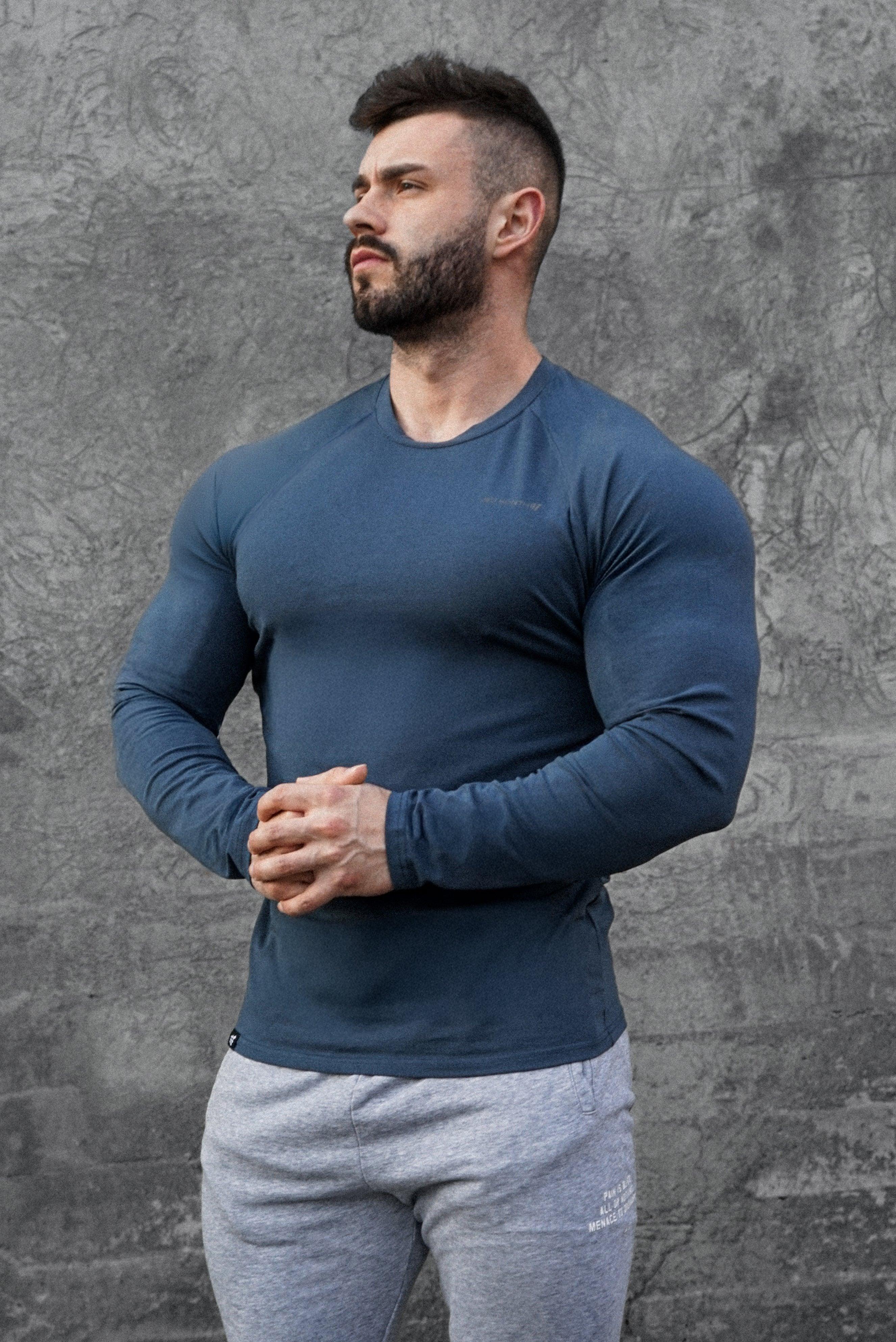Titan Muscle-Fit Long Sleeve T-Shirt - Steel Blue M / Blue